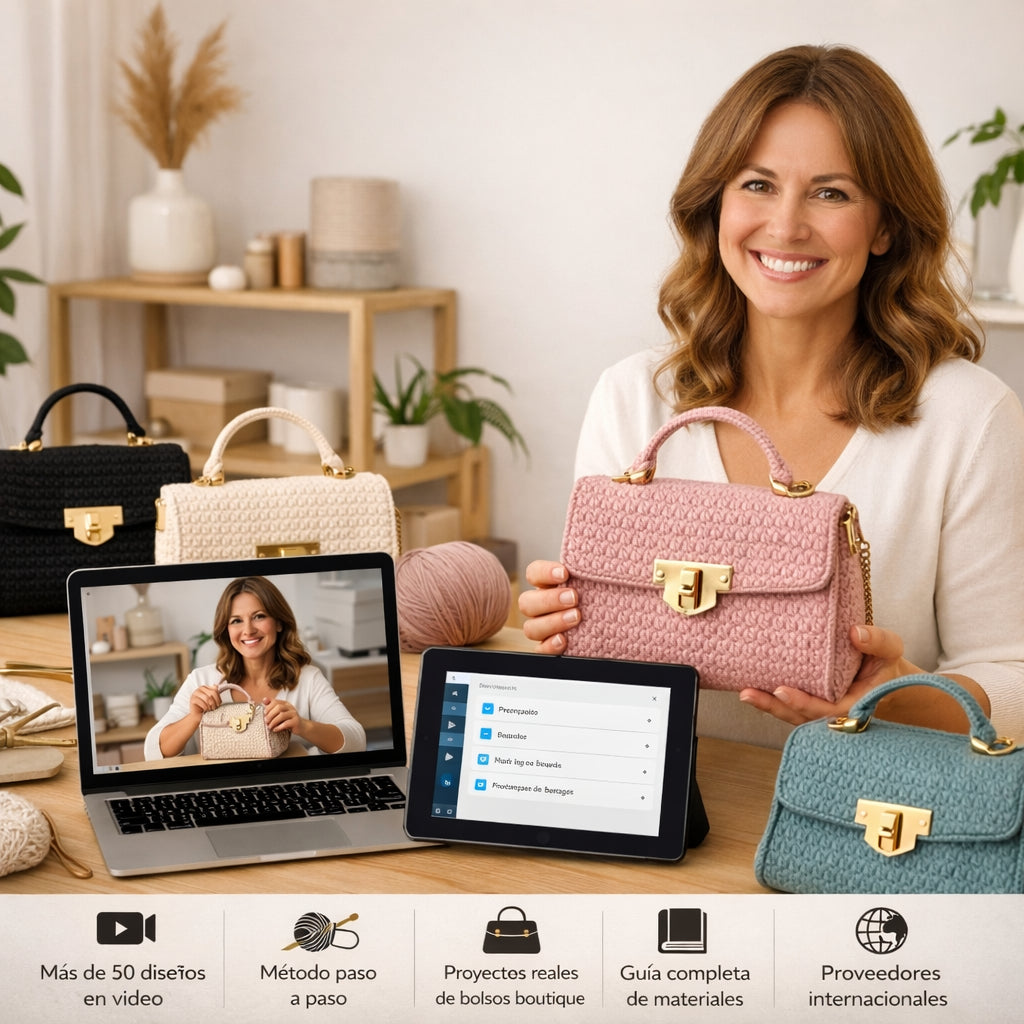🎓 Curso completo para tejer bolsos con acabado boutique.